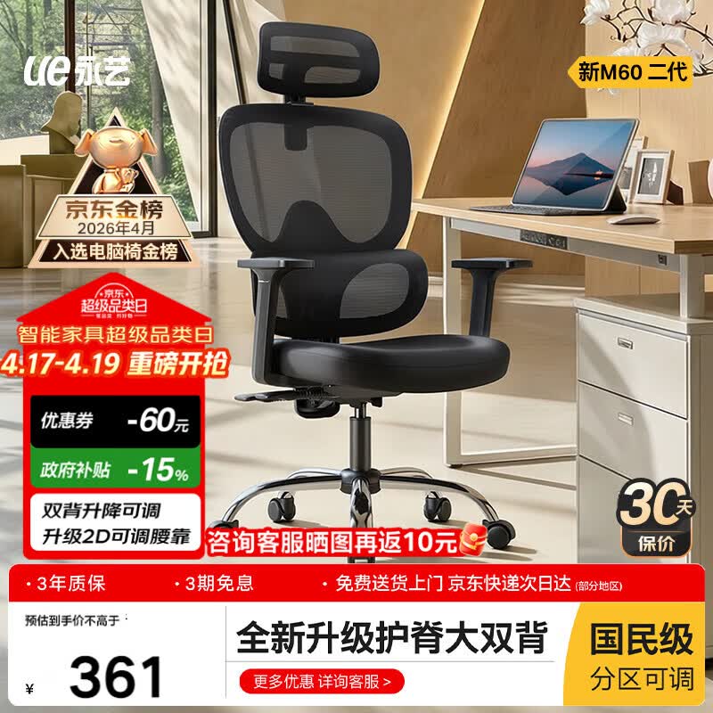 自营永艺M60二代 人体工学椅双背电脑椅办公椅电竞椅子人工力学座椅升降背