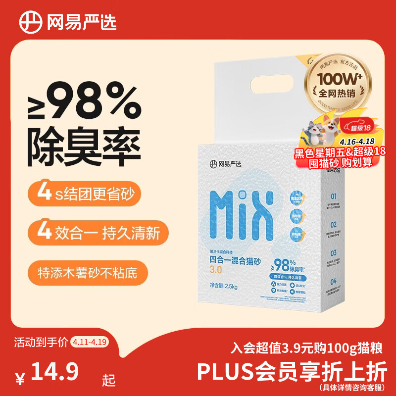 自营网易严选四合一豆腐膨润土植物混合猫砂强结团不沾底除臭木薯猫砂 2.5kg