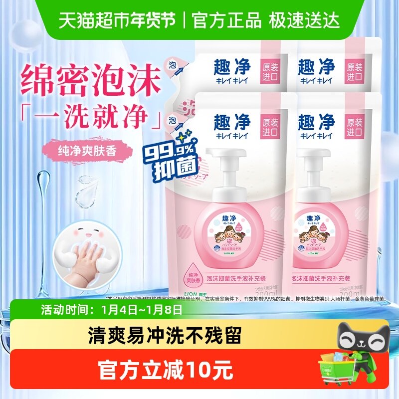 狮王趣净泡沫抑菌洗手液补充装家用全家适用儿童洗手液温和