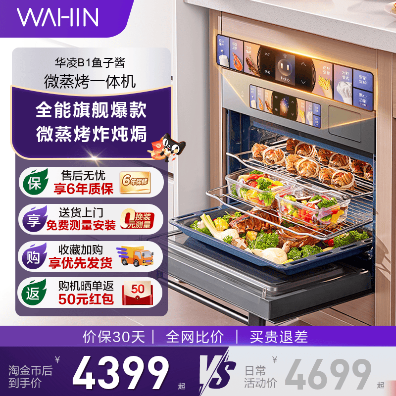 旗舰店美的出品华凌B1鱼子酱微蒸烤炸炖一体机嵌入式微波炉电蒸烤箱家用