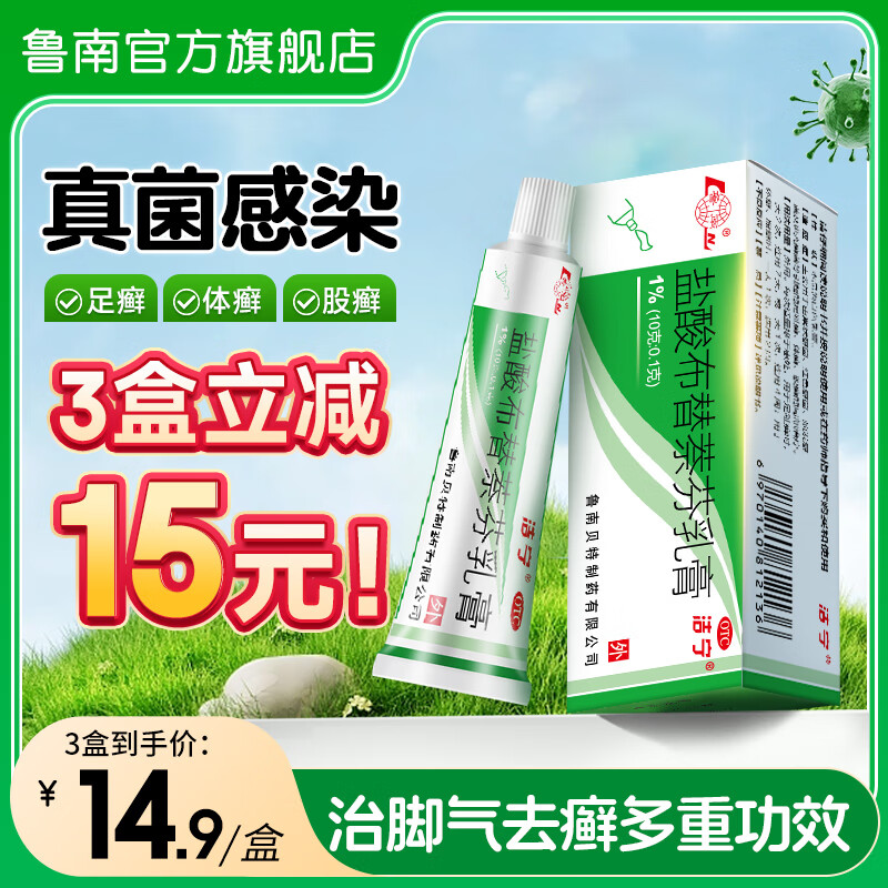 旗舰店鲁南 洁宁 盐酸布替萘芬乳膏10克 脚气药脚臭脚痒 止痒脱皮烂脚丫 真菌感染 杀菌止痒 1盒【约10天用量】
