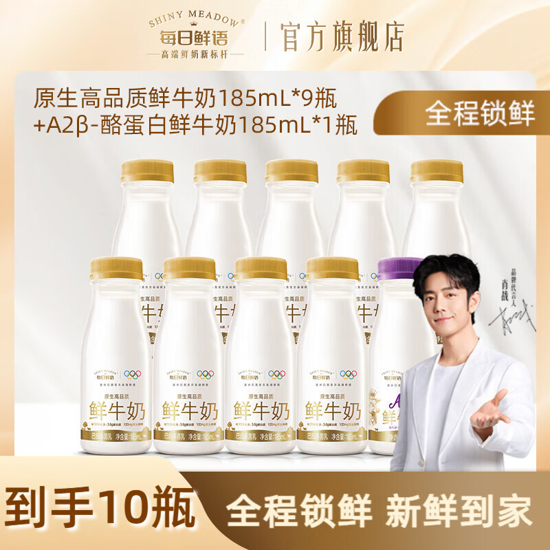 旗舰店每日鲜语A2β酪蛋白巴氏杀菌鲜牛奶亲和易吸收+全脂3.6原生锁鲜生牛乳小瓶 A2 185ml*1瓶+全脂185ml*9瓶ZP