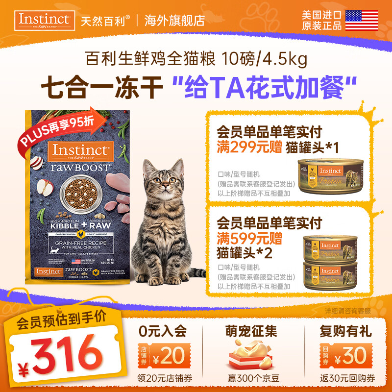 旗舰店instinct天然百利猫粮进口双拼冻干生鲜鸡肉老猫通用全价猫粮 【拯救挑食怪-效期26/10】原食生鲜鸡肉猫粮4.5kg
