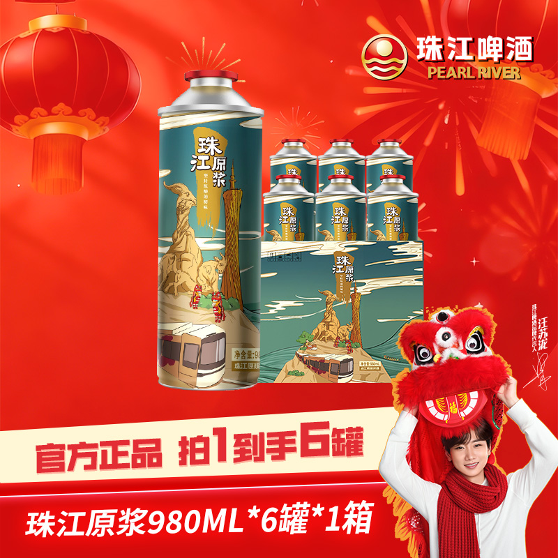 旗舰店11°P珠江原浆啤酒980ml*6罐-dr