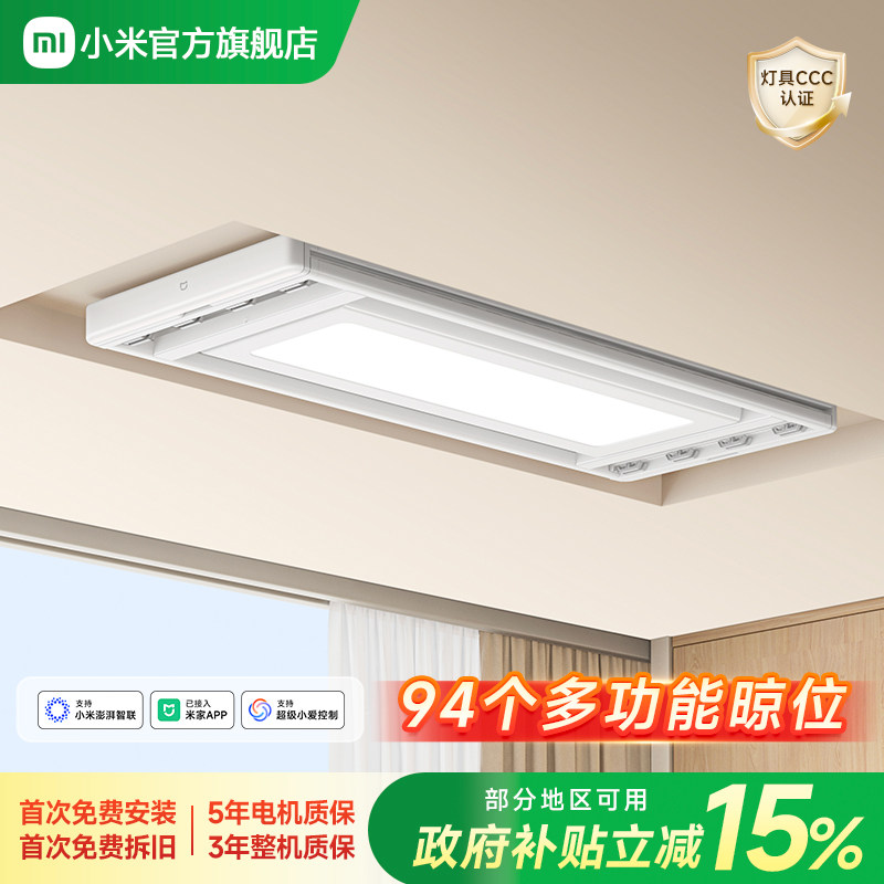 百亿补贴小米官旗米家智能晾衣机2Pro电动晾衣架隐形升降折叠3D曲面穹顶灯