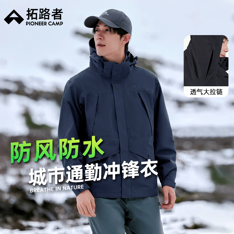 旗舰店拓路者(Pioneer Camp)硬壳冲锋衣男户外防风防雨外套春秋款男士登山服中年夹克冬季保暖 藏青-单冲腋下拉链款 L