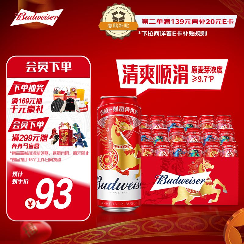 自营百威啤酒TOP淡色拉格450ml*18听整箱装新老包装交替发货