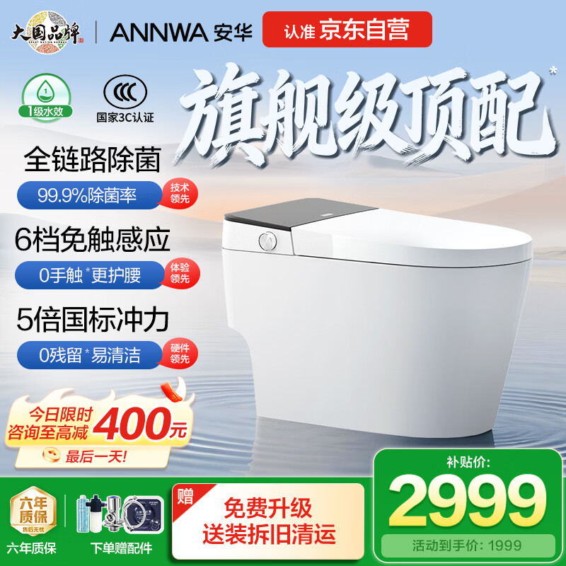 自营安华A8全智能马桶泡沫盾清洗烘干NiL306M 300坑距免费送装座便器