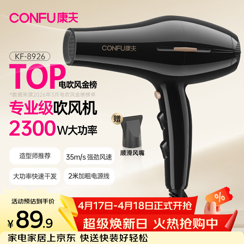 自营康夫(CONFU)电吹风机2300W大功率家用速干大风力护发吹头发理发店发廊专用生日礼物吹风筒KF-8926