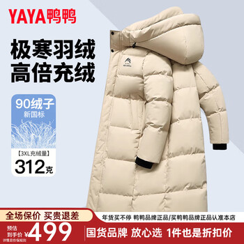 旗舰店鸭鸭王一博同款312g充绒羽绒服长款过膝男女极寒加厚冬季保暖外套HY 燕麦色-YE4B001056A S