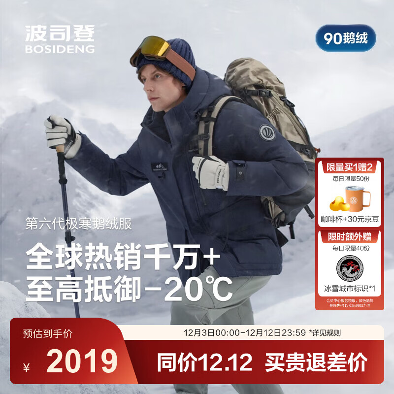 旗舰店波司登(BOSIDENG)25年新款极寒羽绒服男款90鹅绒科技蓄热连帽保暖加厚百搭外套 【趋势推荐】极地灰8270 L 180/100A 体重约140-160斤