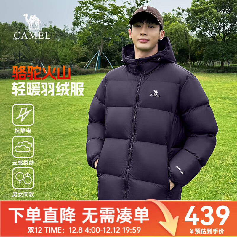 旗舰店骆驼羽绒服防泼水鸭绒男女加厚户外防寒冬季面包服 青黛紫 男女同款,7674B XL