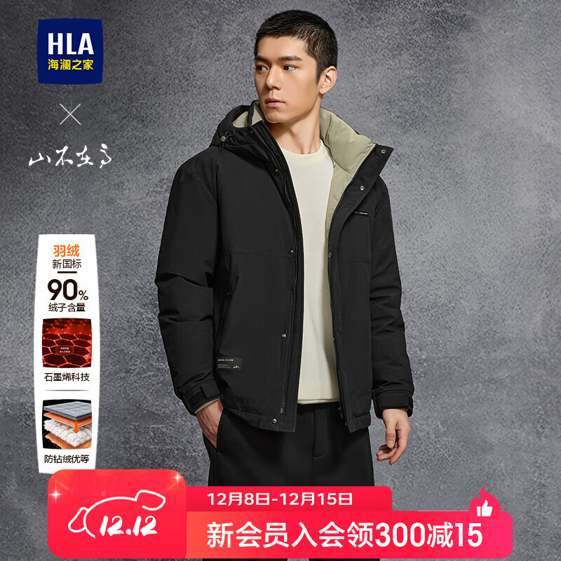 旗舰店HLA羽绒服男25新款山不在高系列秀场同款外套男冬 黑色96 M 170/88A 推荐125~136斤