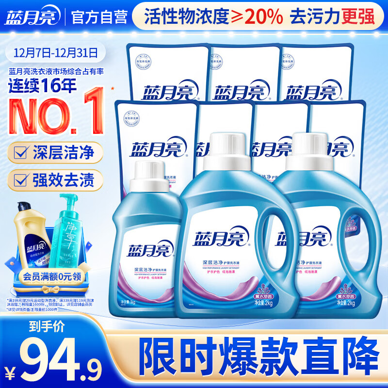 自营蓝月亮深层洁净洗衣液 薰衣草香 2kg*2+1kg+500g*7补充装 强效去渍