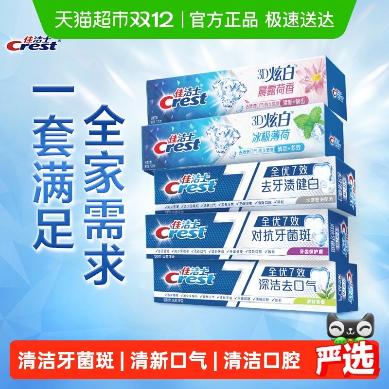 【下拉详情页享优惠】佳洁士全优7效炫白牙膏亮白去黄清新口气套