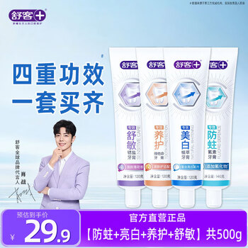 旗舰店舒客专效牙膏亮白防蛀舒敏护龈清新口气家庭装 4支