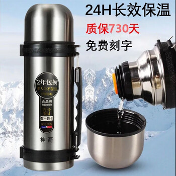 百亿补贴神箭保温杯24小时保温大大容量304不锈钢男生女士户外车载便携水杯子 1200ml本色 按压出水+免费定制