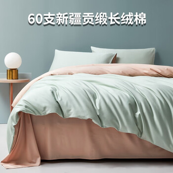 旗舰店AIDLI 【新疆棉】60支贡缎316根全棉四件套 高支高密双人四件套 碧绿+朝曦金1 200*230四件套(1.5/1.8m床)