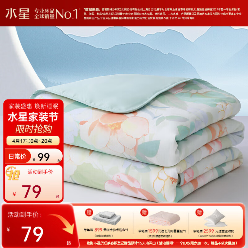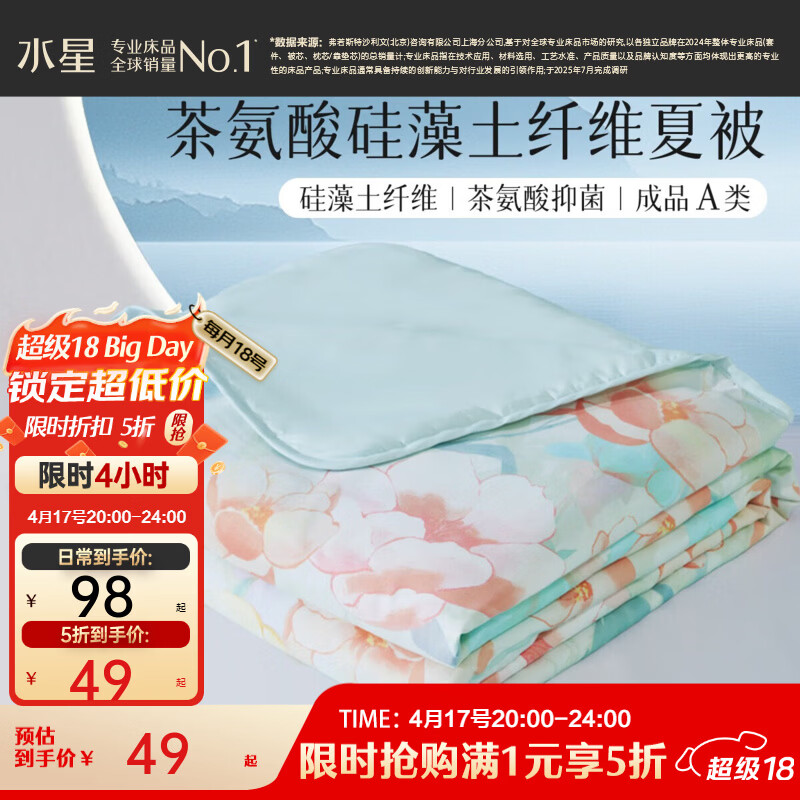 旗舰店水星家纺集团出品 百丽丝A类可水洗夏凉被 茶氨酸抗菌夏被空调被夏季被芯 【A类负离子抗菌+可水洗】 200cm*230cm