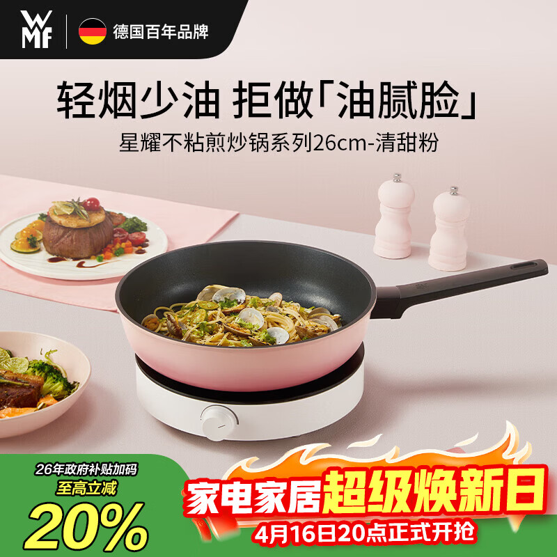自营WMF德国福腾宝煎锅平底锅不粘锅家用多功能煎炒锅星耀26cm粉厨房好物