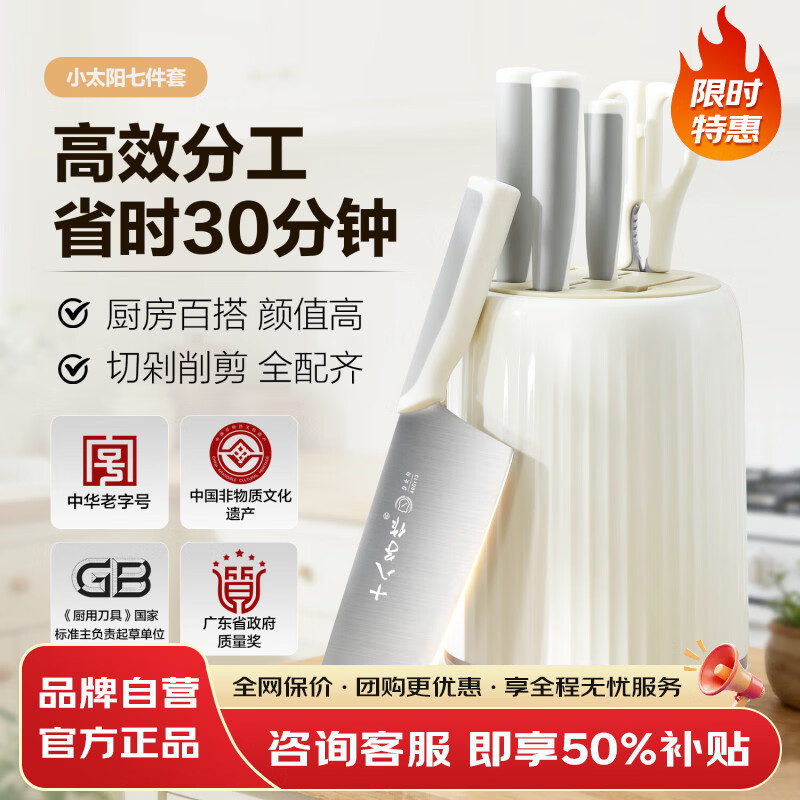 旗舰店十八子作厨房刀具套装砍骨刀切片刀水果刀剪刀内置磨刀石可拆卸防滑刀架 【精美礼盒装】小太阳七件套刀 SL2560