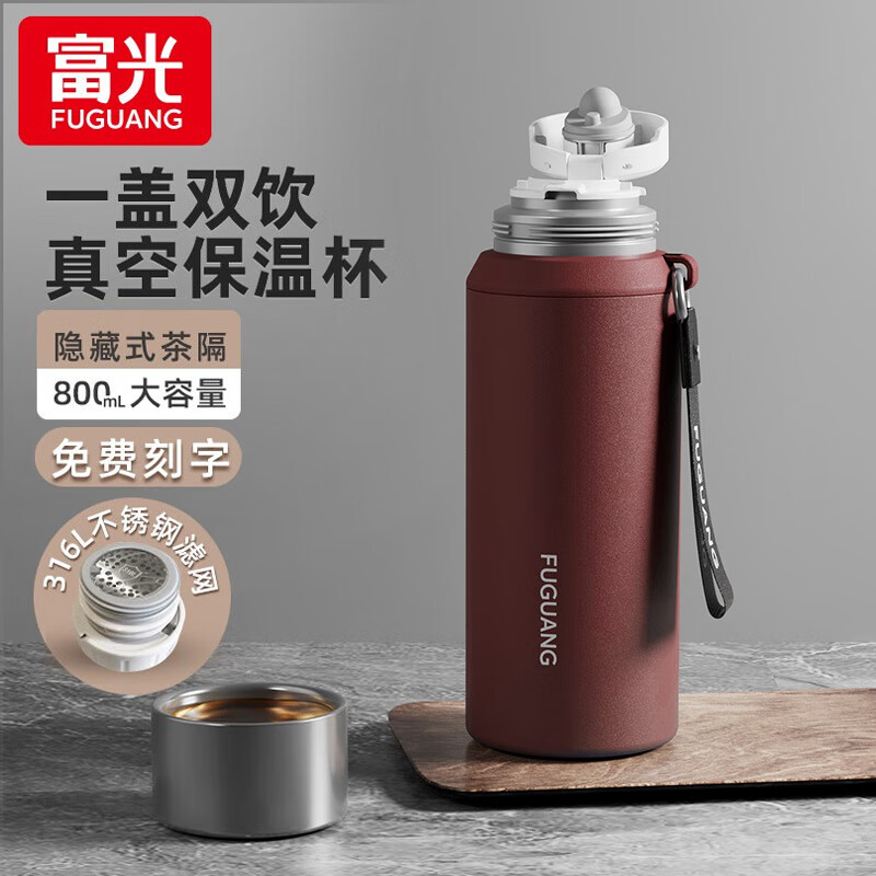 旗舰店富光保温杯大容量男女泡茶壶焖茶杯316不锈钢学生户外便携商务水杯子 紫红【316L不锈钢】800ml