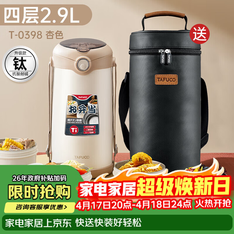 自营泰福高(TAFUCO)保温饭盒可微波上班族大容量便携便当饭盒2.9L钛材质食品级T0398