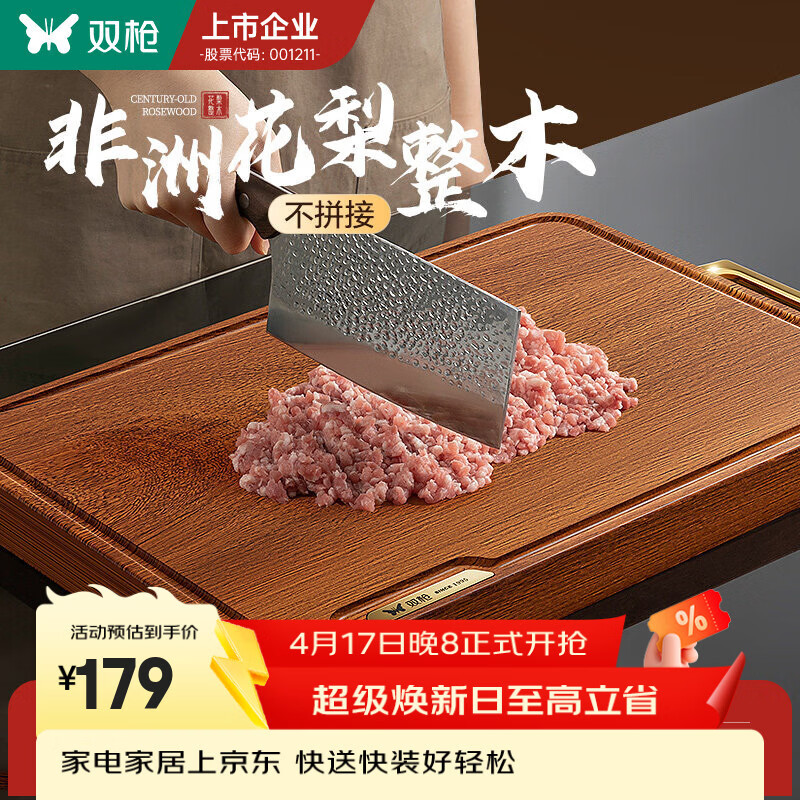 旗舰店双枪(Suncha)金标非洲花梨木整木切菜板实木菜板防霉抗菌家用食品级案板砧板 【金标加厚】50*33CM(4-6人款)