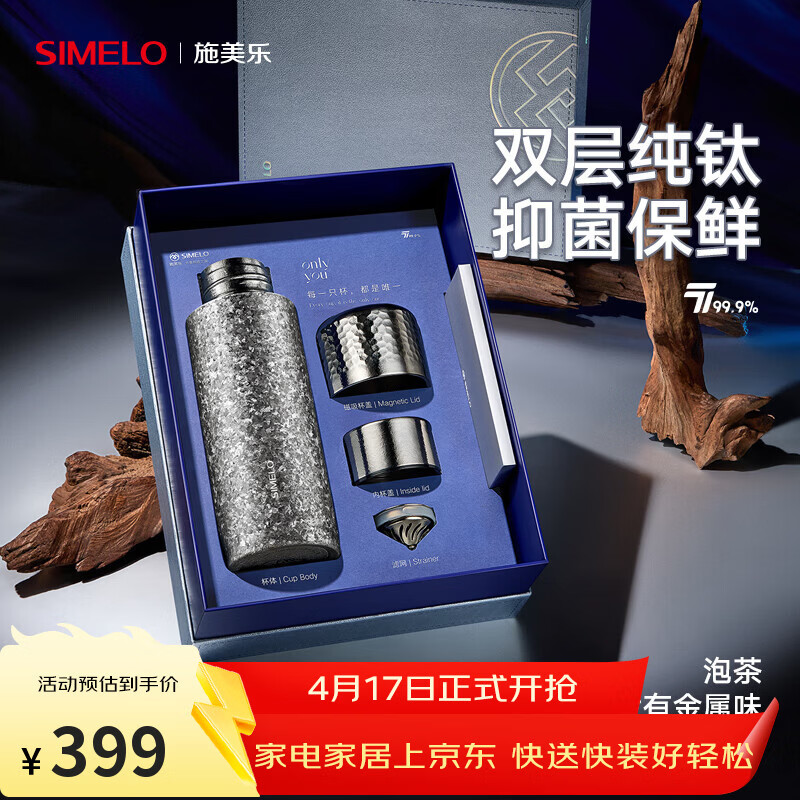 自营SIMELO施美乐纯钛保温杯男女士焖茶杯泡茶杯户外钛水杯子生日礼物450ml
