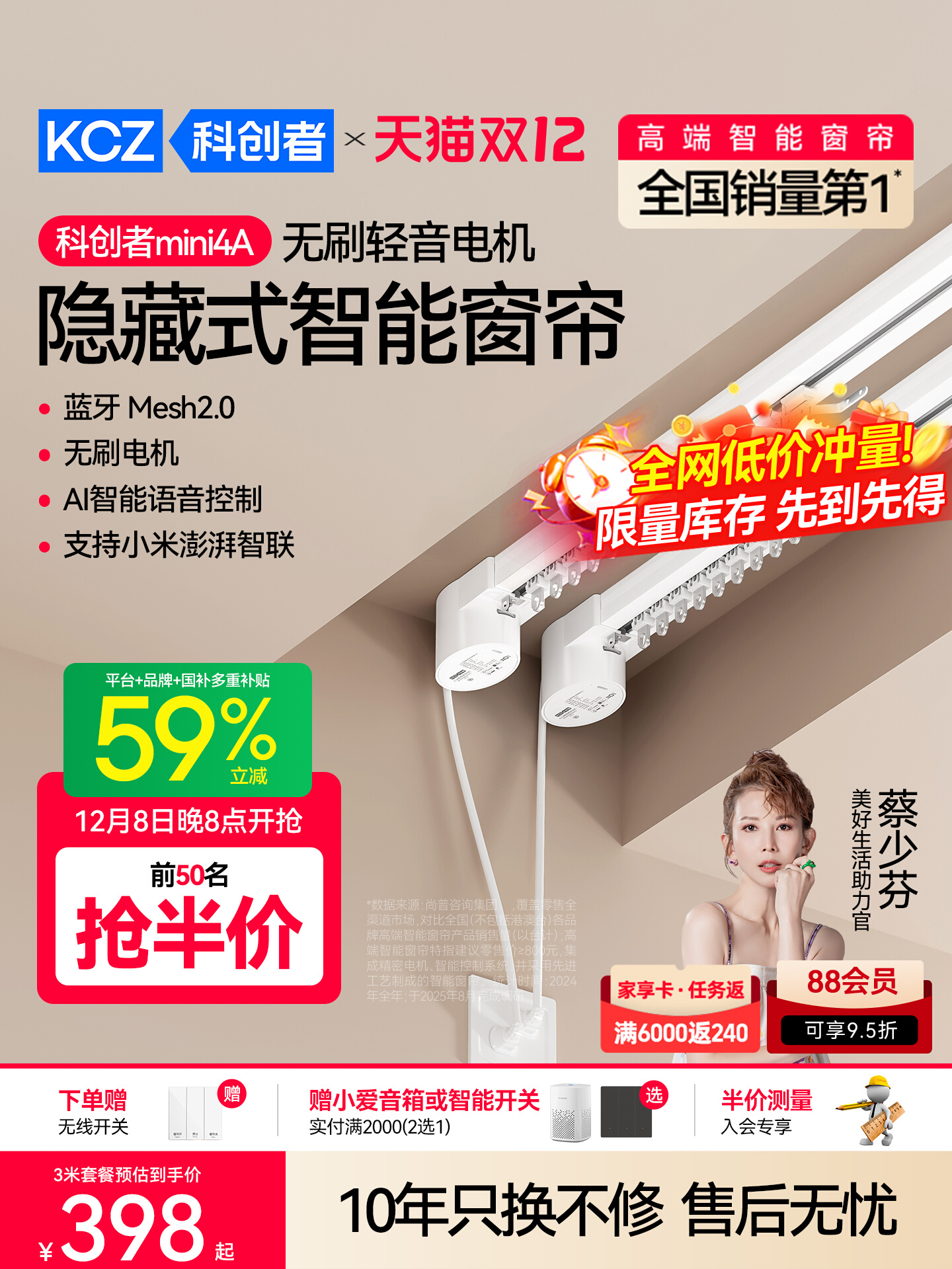 旗舰店科创者电动窗帘轨道智能全自动mini4A语音小无刷电机蓝牙2.0控制