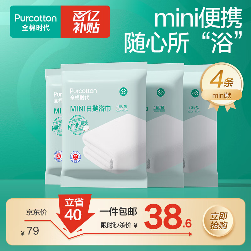 自营全棉时代一次性浴巾毛巾压缩酒店便携旅游家用浴巾4包装100cm*60cm
