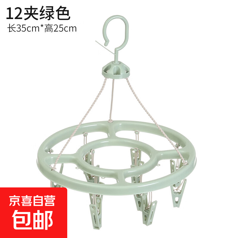 自营家用晾衣架多夹圆盘晒衣撑挂衣架子晒袜子收纳学生宿舍用 12夹绿色