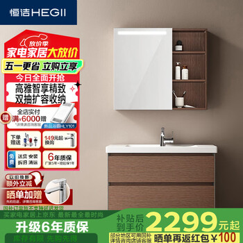 自营恒洁(HEGII)浴室柜 陶瓷一体盆抗污易洁智能美妆柜洗脸盆柜组合胡桃BC6223-90