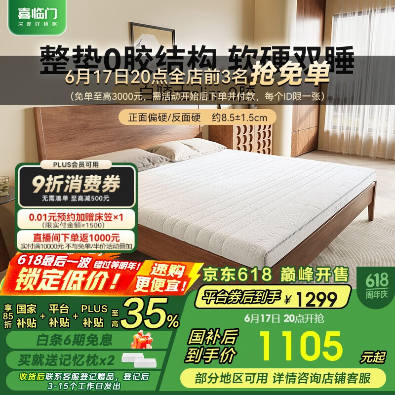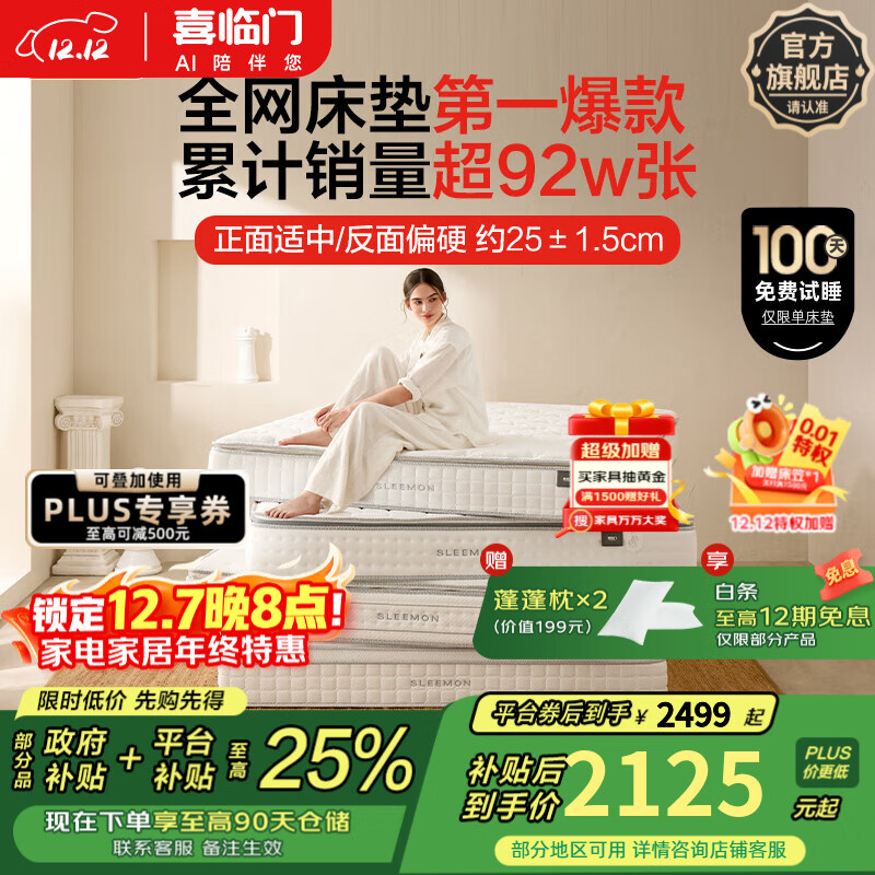 旗舰店喜临门乳胶黄麻床垫 轻音独袋弹簧床垫 席梦思 白骑士 plus版【全网爆款】双睡感/25CM 1.5*2米