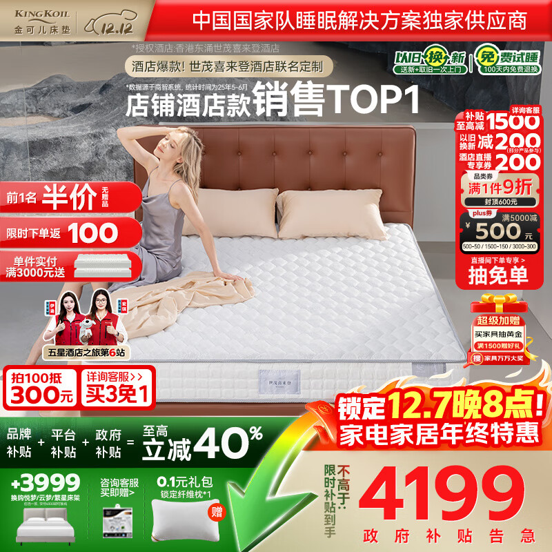 旗舰店金可儿(Kingkoil)弹簧床垫独立袋装弹簧偏硬护脊1.8米*2米五星酒店款 世茂喜来登 世茂喜来登【7度偏硬|22cm】缓震 180*200cm
