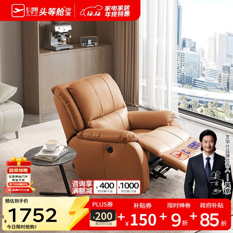 自营芝华仕(CHEERS)头等舱真皮单人沙发客厅小户型电动功能懒人椅芝华士明星椅K621橙