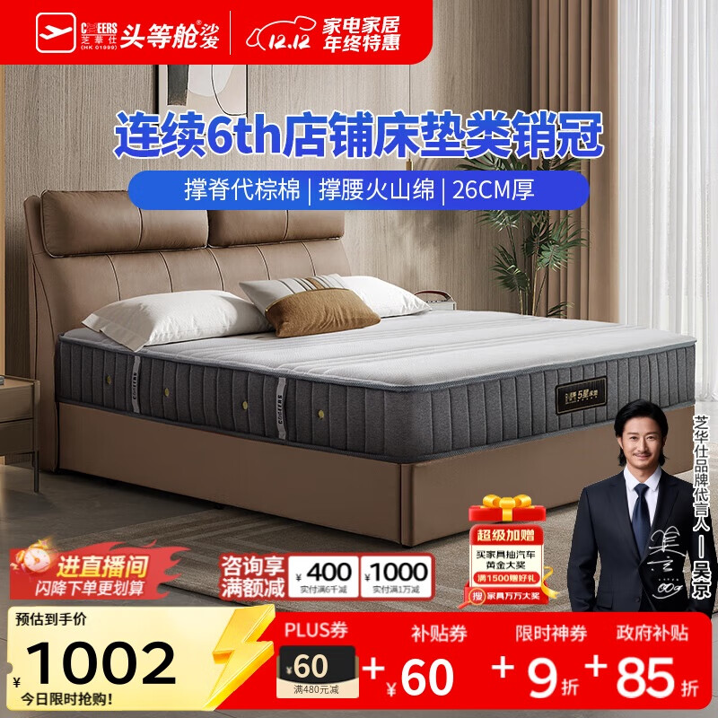 自营芝华仕(CHEERS)独立弹簧次卧室软硬两用席梦思护脊款升级版明星垫D026代棕款1.5m
