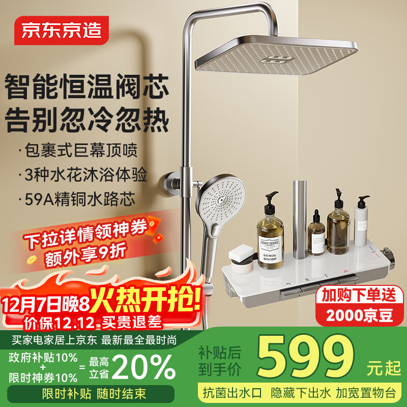 自营京东京造【国家补贴】钢琴师琴键恒温淋浴花洒全套装一体全铜淋浴器典雅银