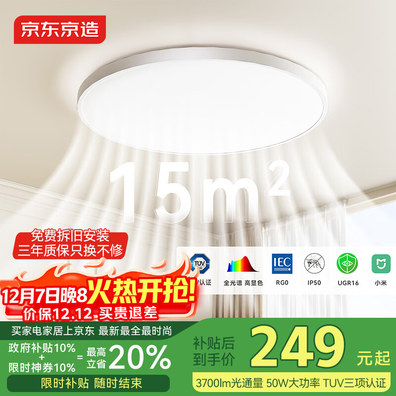 自营京东京造【国家补贴】U1 Pro 卧室吸顶灯D450全光谱智能护眼吸顶灯三防灯