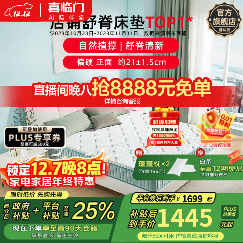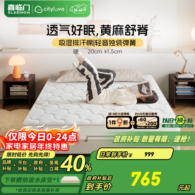 旗舰店喜临门床垫 政府补贴 独立袋装弹簧加硬护脊黄麻弹簧厚床垫 光年护脊 光年护脊3.0床垫【厚21cm】 1.5*2米(注意尺寸)