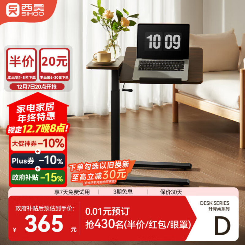 自营西昊D01Pro床边桌气动升降桌任意桌可移动电脑桌双面无级翻转小边几