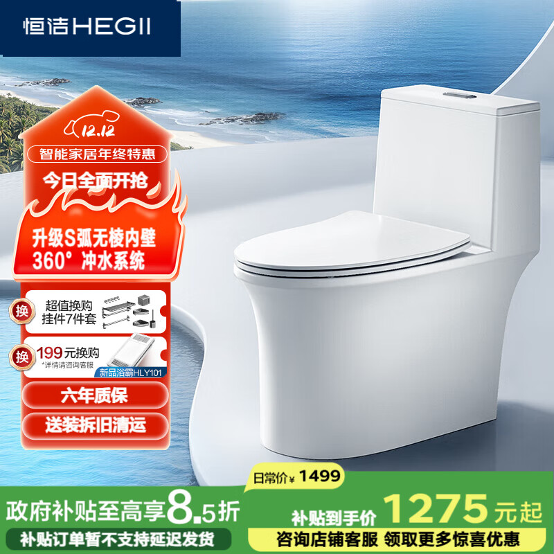 自营HEGII恒洁轻智能马桶自动冲水小户型家用坐便器521