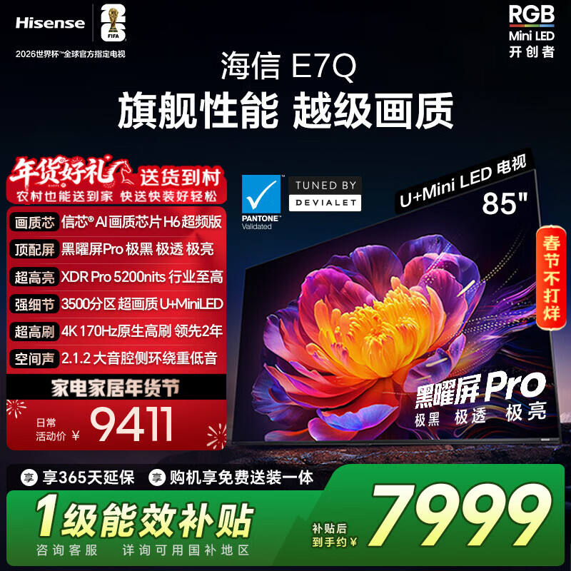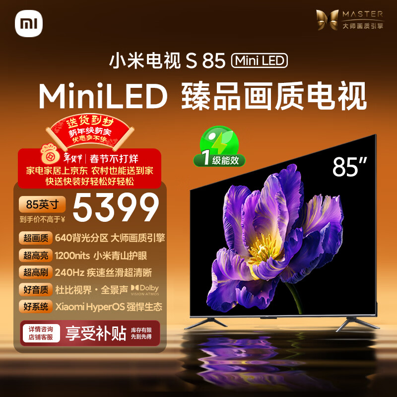 自营小米(MI)电视S85 Mini LED 85英寸 640分区 1200nits 240Hz 澎湃OS 一级能效 L85MA-SPL 以旧换新