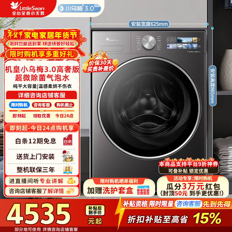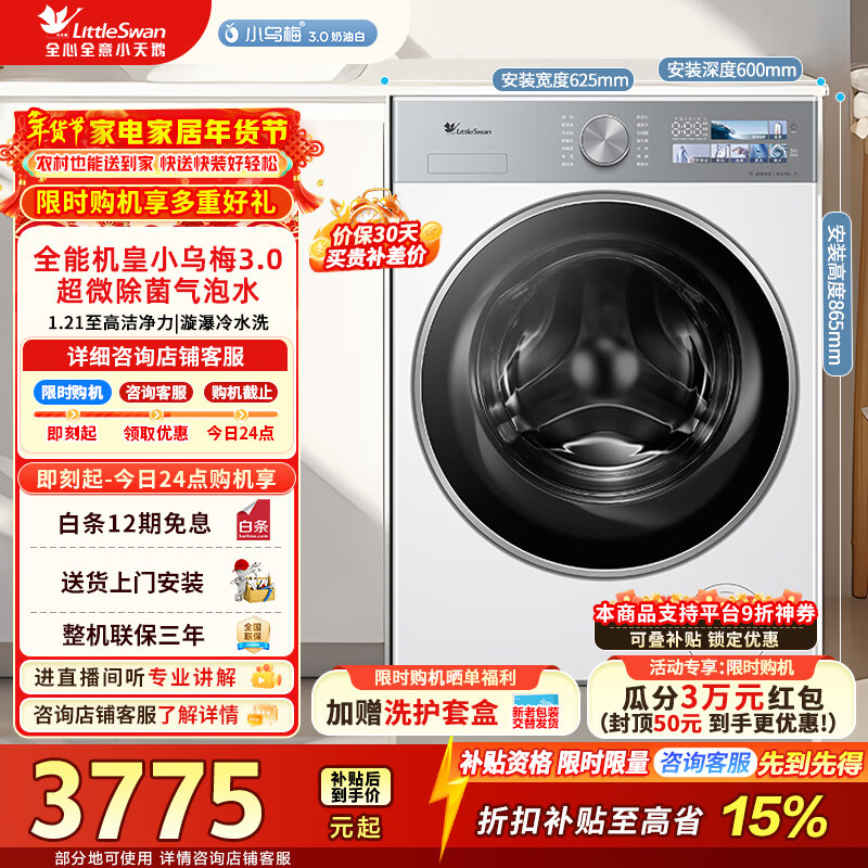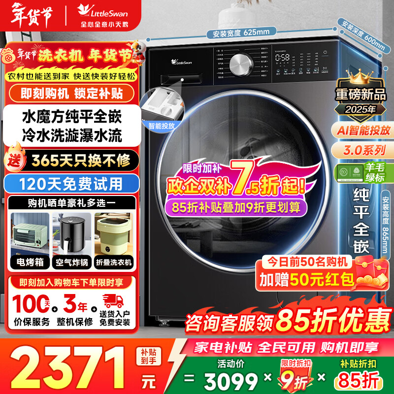旗舰店小天鹅(LittleSwan)滚筒洗衣机【小乌梅3.0】超薄全嵌 10公斤家用全自动大容量水魔方 智能投放 家电补贴以旧换新 轻享版【TG10SC08PRO】 单洗