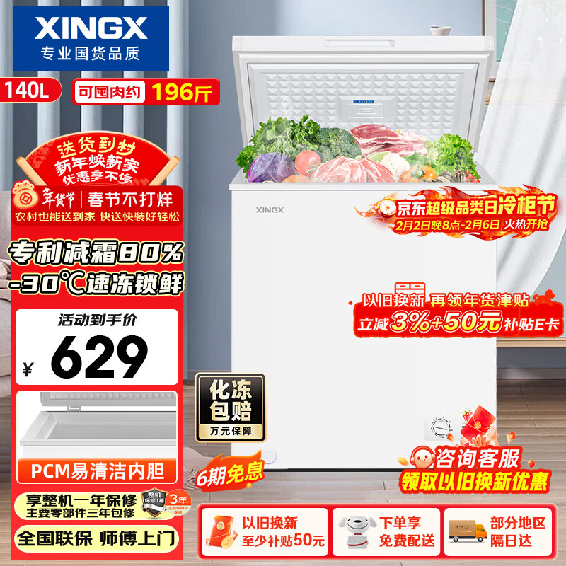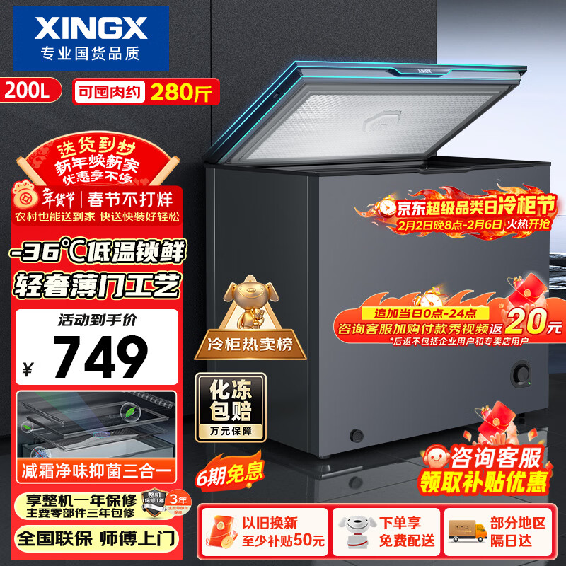 自营星星(XINGX)200L单温家用小型冰柜 大容量减霜保鲜净味节能一级能效冰箱冷藏冷冻两用冷柜BD/BC-200KE国家补贴