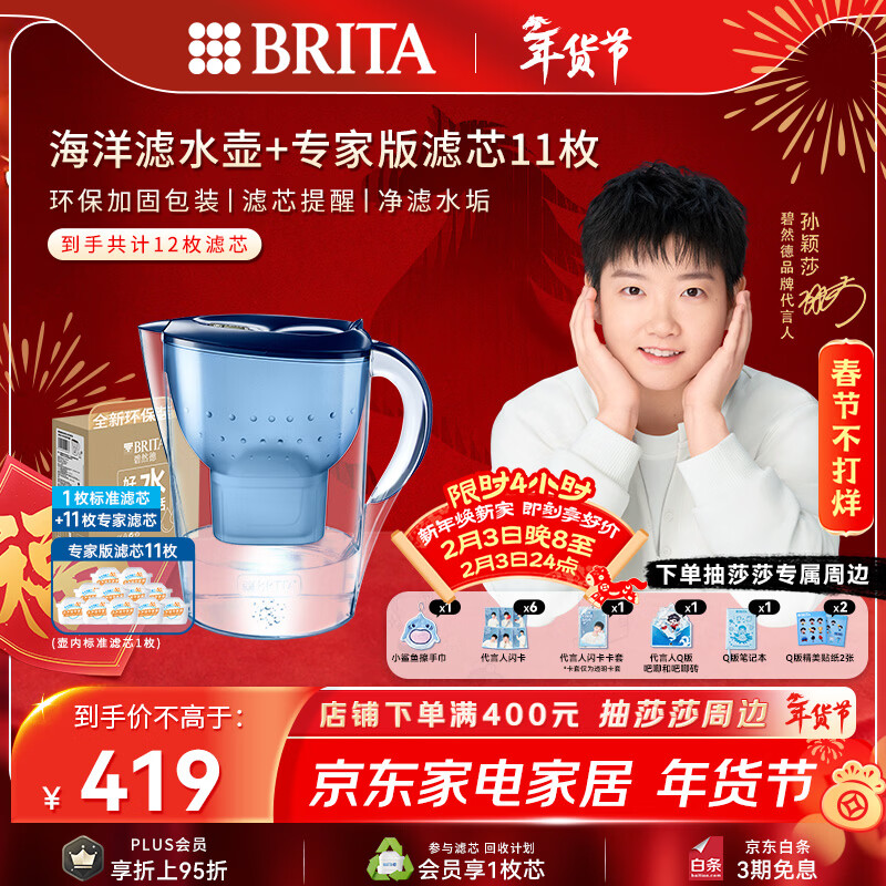 自营碧然德(BRITA) 过滤净水器 家用滤水壶 净水壶 海洋系列 3.5L蓝色 一壶3芯装 环保加固包装