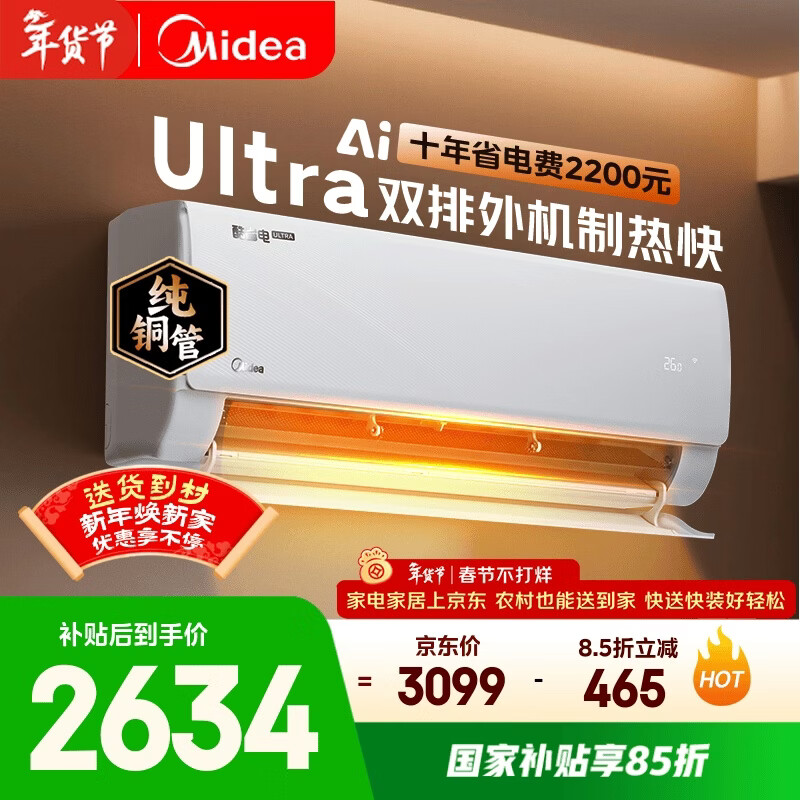 自营美的空调酷省电Ultra 大1.5匹一级能效变频 双排纯铜管 卧室节能空调挂机 国家补贴KFR-35GW/N8KS1-1U