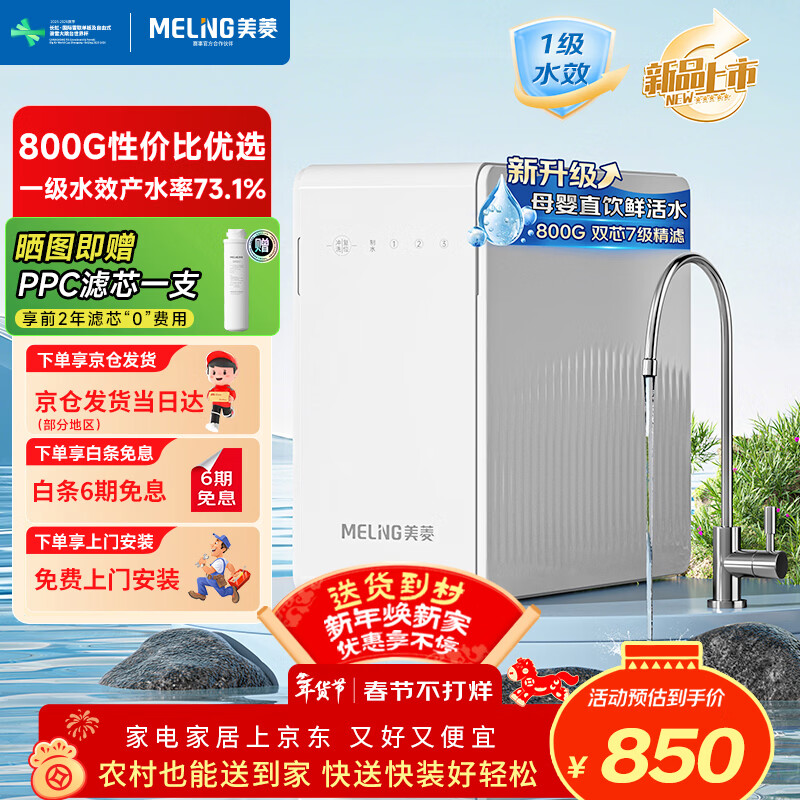 自营美菱(MeiLing)净水器家用净饮机水净水机800G 双出水直饮水机长效RO反渗透厨下自来水过滤直饮纯水机ME-DR80420