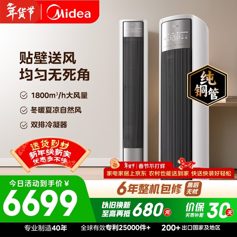 自营美的空调 全面风 大3匹 风尊二代 新一级能效变频 双排纯铜管 客厅立式柜机 国家补贴 KFR-72LW/N8QM1