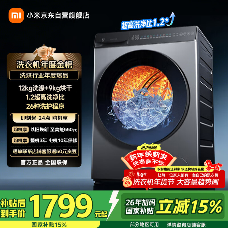 旗舰店小米(MI)米家【新品首发】14公斤大容量三筒洗洗烘一体超电解技术1.75高洗净比内衣袜子柔烘高温除菌洗衣机 14kg丨超电解技术丨四路独立投放 三筒